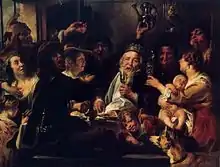 The King Drinks or The Bean King is a c.1638 painting by the Flemish Baroque artist Jacob Jordaens, now in the Hermitage Museum in St Petersburg.