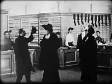 The Kleptomaniac, is a 1905 American silent drama film, directed by Edwin S. Porter partly filmed on location in New-York denouncing the discriminatory treatment of the poor by the justice system. It is one of the first American social drama and Courtroom drama.[1]