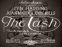 The Lash is a 1934 British drama film directed by Henry Edwards and starring Lyn Harding, John Mills and Leslie Perrins.[1] It was based on a play of the same name by Cyril Campion.[2] A brutish millionaire horsewhips his dissolute son.[3] The film was made as a quota quickie by Twickenham Studios, one of the largest producers of Quota films.[4]