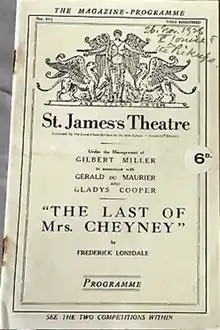 The Last of Mrs. Cheyney is a 1925 play by British playwright Frederick Lonsdale. A popular success in London, it was adapted four times as a film, three times in the United States from 1929 to 1951, and the last, in 1961, as a German production.