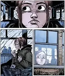 Reviewers also praised the comic's artwork. Alasdair Stuart of SciFiNow wrote that the art was "so expressive and relaxed", naming Hicks "one of the best artists of her generation".[34] Jen Bosier of Forbes felt that the art style worked well within the context of the story,[35] and IGN's Schedeen felt that the comic heavily relied on the artwork, and that its art style gave it a unique "style and identity".[29] Nadler of Bloody Disgusting called it "quite simplistic, but very clean",[30] and "visually expressive when it matters",[31] comparing it to Scott Pilgrim.[30] Nadler also praised the choice of color, stating that it contained "the right palette of dark and murkey hues", as well as the cover artwork, calling it "consistently stunning".[36] Jennifer Cheng of Comic Book Resources also wrote that the colors fit with the setting of the comic.[37] Peter Jubinsky of Geeks of Doom particularly praised Hicks' depiction of the Infected as "in pain and desperate", calling this "especially harrowing".[38]