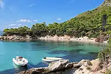 Principal photography officially began at Pinewood Studios in Iver, England on January 30, 2021.[67] Filming for McCarthy's scenes eventually began in April 2021.[68] On April 6, it was announced that additional filming would be happening in summer in Sardinia, Italy, for a total of "roughly three months".[69] In June 2021, production was temporarily halted due to multiple crew members of the film contracting COVID-19.[70] Filming resumed about a week later and officially wrapped on July 11, 2021.[71][72] On December 30, 2021, Bailey shared some new behind-the-scenes photos of the set, including a glimpse of her portrayal of Ariel. The actress took to Instagram to wrap up her year and shared photos of moments of shooting the film. The first photo showed the film's script, which was blurred to avoid spoilers, but still showed her character name "Ariel" in bold print. One photo showed her swimming in Sardinia's waters, while another showed the process of film-making using CGI.[73] In February 2023, Marshall revealed that he hopes post-production work on the film will be completed by March, saying: