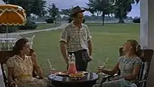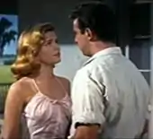 Alex North composed the film's score, which leaned toward a jazz style. "The Long Hot Summer" was the only song written by North to be used as the title track of a film. Composed in an AABA form, it was characterized by its lyricisms and its "tense dissonant" jazz-figures. The lyrics of the song were written by Sammy Cahn, while instrumental variations of the melody were used throughout the film, underlining the progression of the relationship between Ben and Clara.[23] Recorded by Jimmie Rodgers, it was released by Roulette Records, reaching number 77 on Billboard's Top 100 Sides in June 1958.[24] The orchestra was conducted by Lionel Newman.[25][26]