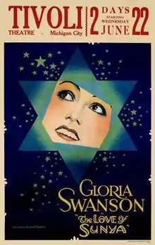 The Love of Sunya (also known as The Loves of Sunya) is a 1927 American silent drama film directed by Albert Parker and based on the play The Eyes of Youth by Max Marcin and Charles Guernon. Produced by and starring Gloria Swanson, it also stars John Boles and Pauline Garon.[1] A copy of The Love of Sunya survives in the Paul Killiam collection.[2]