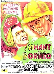The Lover of Borneo (French: L'amant de Bornéo) is a 1942 French comedy film directed by Jean-Pierre Feydeau and René Le Hénaff and starring Arletty, Jean Tissier and André Alerme.[1] [2] The film was based on a 1941 stage play of the same title by Roger Ferdinand and José Germain. It was shot at the Cité Elgé Studios in Paris. The film's sets were designed by the art director Jacques Colombier.