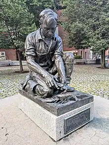 The Maine Lobsterman is a sculpture in Lobsterman Park, Portland, Maine, United States. It was sculpted by Victor Kahill for the 1939 New York World's Fair and served as the centerpiece of the Maine exhibit in the Hall of States. Once it returned to Portland, it was displayed at the Columbia Hotel and the Portland City Hall before being placed at its present location on Temple Street in 1977.[1] In 2021, the Portland Press Herald described it as one of the most iconic landmarks in the city.[2] In July 2022, the animal rights non-profit People for the Ethical Treatment of Animals sent a letter to mayor Kate Snyder urging the city replace the sculpture with another sculpture showing a lobster crushing a trap.[3]