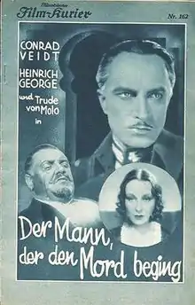 The Man Who Murdered (German: Der Mann, der den Mord beging) is a 1931 German crime drama film directed by Curtis Bernhardt and starring Conrad Veidt, Trude von Molo and Heinrich George.[1] It is adapted from the 906 novel L'homme qui assassina by Claude Farrère. The film's sets were designed by the art directors Heinrich Richter and Hermann Warm. It was shot at the Babelsberg Studios in Potsdam.[2] Location filming took place in Istanbul and around the Bosphorus. It premiered at the Gloria-Palast in Berlin. The following year a separate English version, Stamboul, was made.