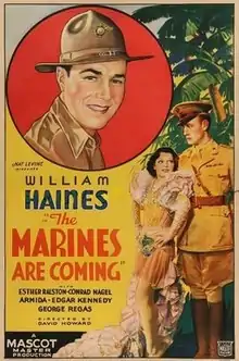 The Marines Are Coming is a 1934 American action drama film directed by David Howard and starring William Haines, Conrad Nagel and Esther Ralston. It was produced and distributed by the independent Mascot Pictures. It was the final film acting role of Haines who had a major success in the 1928 film Tell it to the Marines.