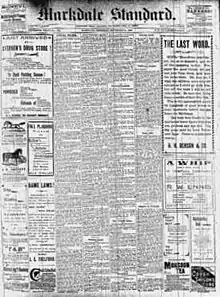 The Markdale Standard was a newspaper in Markdale, Ontario, in Grey County Canada from 1880 until 2012.[1] The paper was continuously published for 132 years with a circulation of 1,300.[2][3][4][5][6][7][8] The paper was known for its longevity and outlasting its peers, in 1880 there were 16 local newspapers in Grey County, but by 1920 only one remained, The Markdale Standard.[9]
