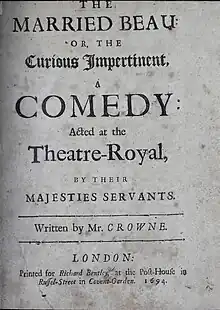 The Married Beau or The Curious Impertinent is a 1694 comedy play by the English writer John Crowne. It is inspired by a passage from Miguel de Cervantes's Don Quixote. Incidental music was composed by Henry Purcell.