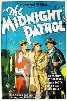 The Midnight Patrol is a 1932 American pre-Code drama film, directed by Christy Cabanne. It stars Regis Toomey, Betty Bronson, and Edwina Booth, and was released on April 10, 1932. Written by George Jeske (screenplay) and Arthur Hoeri (story).