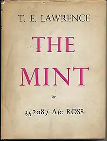The Mint is a book written by T. E. Lawrence[lower-alpha 1] and published posthumously in 1955. It describes his time in the Royal Air Force, working, despite having held senior rank in the army (colonel), as an ordinary aircraftman, under an assumed name, 352087 Ross.