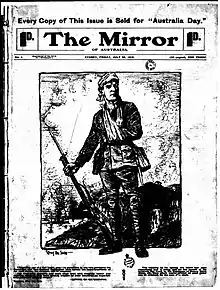 The first issue of The Mirror of Australia appeared on 30 June 1915 and was modeled on the London Daily Mirror and London Daily Sketch papers.[1] The last issue of The Mirror of Australia appeared on 19 May 1917.[2][3] The paper was published during the First World War, and featured articles about Australian Imperial Forces and their engagement in the conflict.[3]
