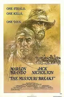 The Missouri Breaks is a 1976 American Western film starring Marlon Brando and Jack Nicholson. The film was directed by Arthur Penn, with supporting performances by Randy Quaid, Harry Dean Stanton, Frederic Forrest, John McLiam, and Kathleen Lloyd in her film debut. The score was composed by John Williams.