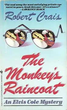 The Monkey's Raincoat is a 1987 detective novel by Robert Crais. It is the first in a series of linked novels centering on the private investigator Elvis Cole and his partner Joe Pike. Cole is a tough, wisecracking ex-Ranger with an irresistible urge to do what is morally right. The novel won the 1988 Anthony Award for "Best Paperback Original" at Bouchercon XIX and the 1988 Mystery Readers International Macavity Award for "Best First Novel";[1][2] and has since been named one of the 100 Favorite Mysteries of the Century by the Independent Mystery Booksellers Association.[3]
