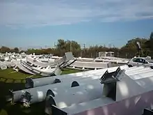 | Trains | 2 trains with 8 cars. Riders are arranged 4 across in a single row for a total of 32 riders per train. |