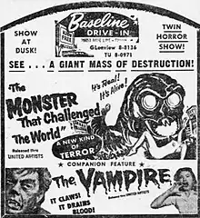 The Monster That Challenged the World (original working titles: The Jagged Edge and The Kraken) is a 1957 black-and-white science-fiction monster film from Gramercy Pictures, produced by Arthur Gardner, Jules V. Levy, and Arnold Laven (who also directed), and starring Tim Holt and Audrey Dalton.[1] The film was distributed by United Artists as the top half of a double feature with The Vampire.