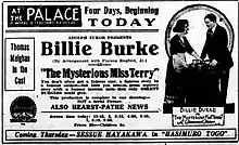 The Mysterious Miss Terry is a 1917 American silent drama film produced by Famous Players–Lasky and distributed through Paramount Pictures. The film stars Billie Burke, who at the time was a famous stage actress, married to Florenz Ziegfeld, Jr. This particular story was adapted special to the screen for Burke by writer Gelett Burgess. It is a lost film.[1][2][3]