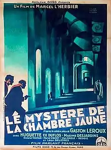 The Mystery of the Yellow Room (French: Le mystère de la chambre jaune) is a 1930 French mystery film directed by Marcel L'Herbier and starring Roland Toutain, Huguette Duflos, and Léon Belières.[1] It is based on the 1907 novel of the same title by Gaston Leroux. L'Herbier made a sequel, The Perfume of the Lady in Black, the following year.