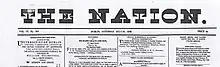 The Nation was an Irish nationalist weekly newspaper, published in the 19th century. The Nation was printed first at 12 Trinity Street, Dublin from 15 October 1842 until 6 January 1844. The paper was afterwards published at 4 D'Olier Street from 13 July 1844, to 28 July 1848, when the issue for the following day was seized and the paper suppressed. It was published again in Middle Abbey Street on its revival in September 1849[1] until 1900, when it merged with the Irish Weekly Independent.