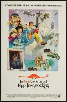The New Adventures of Pippi Longstocking is a 1988 musical adventure film[1] written and directed by Ken Annakin, based on the Pippi Longstocking book series by Astrid Lindgren. It is a Swedish-German-American[2] joint venture produced by Columbia Pictures, Longstocking Productions, and Svensk Filmindustri. While the title suggests a continuation of previous entries, it is in fact a remake of the original story.