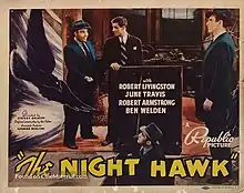 The Night Hawk is a 1938 American crime film directed by Sidney Salkow and written by Earl Felton. The film stars Robert Livingston, June Travis, Robert Armstrong, Ben Welden, Lucien Littlefield and Joe Downing. The film was released on October 1, 1938, by Republic Pictures.[1][2][3]