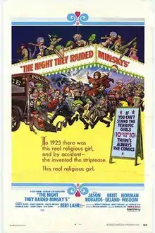 The Night They Raided Minsky's is a 1968 American musical comedy film written and produced by Norman Lear, with music and lyrics by the duo of Charles Strouse and Lee Adams, and directed by William Friedkin. Based on a 1960 novel by Rowland Barber, the film is a fictional account of the invention of the striptease at Minsky's Burlesque in 1925. It stars Jason Robards, Britt Ekland, Norman Wisdom, Forrest Tucker, Harry Andrews, Denholm Elliott, Elliott Gould and Bert Lahr.
