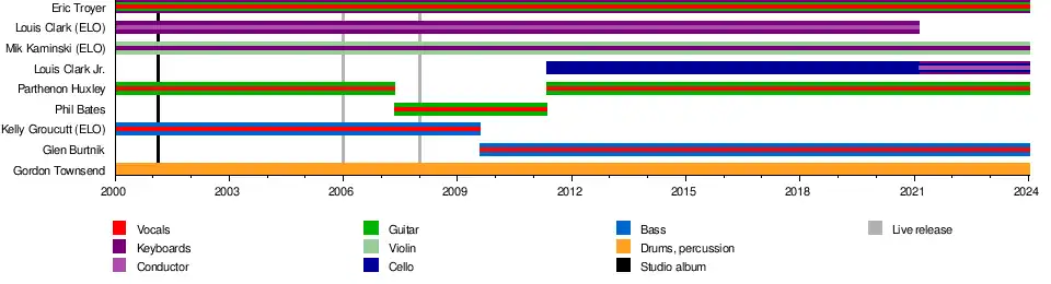 • Eric Troyer – keyboards, vocals, guitar (2000–present) (from ELO Part II)