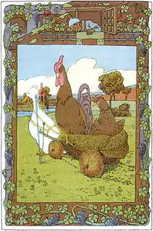 "The Pack of Ragamuffins" (German: Das Lumpengesindel) is a German fairy tale collected by the Brothers Grimm, number 10.[1] The title has been variously translated into English, as in "The Adventures of Chanticleer and Partlet: How They Went to the Mountains to Eat Nuts", "The Pack of Ragamuffins", "The Vulgar Crew", "A Pack of No-goods", "Riffraff", "The Pack of Scoundrels", "The Good-For-Nothings",[2] and possibly others.[3]
