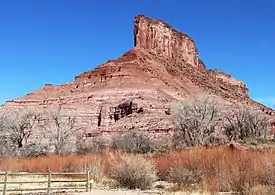 The Palisade is a three-mile (4.9-km) long butte in Mesa County, Colorado, located slightly north of the town of Gateway. Its elevation is 6,591 feet (2,009 meters).[1] It is the most prominent geologic feature in both the eponymously named The Palisade Area of Critical Environmental Concern and The Palisade Wilderness Study Area.[2] The region is a diverse area spanning vertical cliffs, mesas, deep rugged canyons and flat desert valley bottoms. The area is protected for peregrine falcon and golden eagle breeding areas as well as Gunnison sage-grouse habitat. It is also managed for the preservation of sensitive plant species.[3]