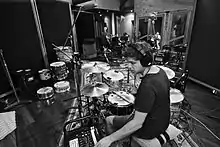 Drummer Josh Bentley setting up at Sing Sing studios in Melbourne in February 2013, for the first recording session for The Paper Kites' debut album.