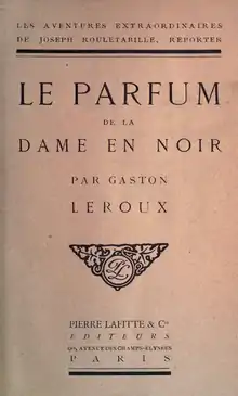 The Perfume of the Lady in Black (French: Le parfum de la dame en noir) is a 1908 mystery novel by the French writer Gaston Leroux. It is the second in the series of books featuring the fictional detective Joseph Rouletabille, preceded by The Mystery of the Yellow Room.[1]