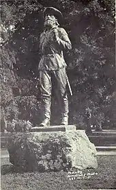 The Pioneer is a thirteen-foot-tall bronze sculpture formerly located on the University of Oregon campus in Eugene, Oregon, United States. It was the artistic work of Alexander Phimister Proctor, commissioned by Joseph Nathan Teal, a Portland attorney. A ceremony celebrated its unveiling on May 22, 1919. It included attendance from persons all across the state, the majority of enrolled students, and a special section of the crowd was reserved for the remaining settlers. T. G. Hendricks and his granddaughter removed the canvas cover, unveiling the statue.[1] As of June 13, 2020, the statue is no longer standing on the University of Oregon campus.[2]
