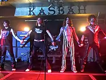 ![]() The 2013 lineup of The Darkness. From left to right: Ed Graham, Dan Hawkins, Justin Hawkins, Frankie Poullain. | |