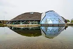 The Pods is reported to be built the highest environmental standards and is aiming for a ‘excellent' BREAAM environmental rating. It has grey water recycling, a bio-mass boiler, and the roof is partly covered with the sedum plants. Hexagonal panels and panes of glass have been used to create the building's dome shaped roofs, which is of a similar style to Cornwall's Eden Project.[3] North Lincolnshire have provided a large pond and car park built next to the leisure centre.