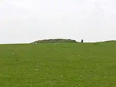A standing stone, height 2 metres (6 ft 7 in), is next to the mound; it was formerly one of two such stones ("the poind and his man").[1] The standing stone in the grounds of Wallington Hall is thought to have been moved from here in the early 18th century.[1][2]
