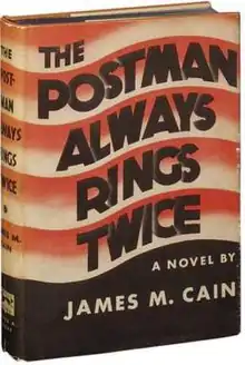 The Postman Always Rings Twice is a 1934 crime novel by American writer James M. Cain. The novel was successful and notorious upon publication. It is considered one of the most outstanding crime novels of the 20th century. The novel's mix of sexuality and violence was startling in its time and caused it to be banned in Boston.[1]