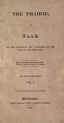 The Prairie: A Tale (1827) is a novel by James Fenimore Cooper, the third novel written by him featuring Natty Bumppo. His fictitious frontier hero Bumppo is never called by his name, but is instead referred to as "the trapper" or "the old man". Chronologically The Prairie is the fifth and final installment of the Leatherstocking Tales, though it was published before The Pathfinder (1840) and The Deerslayer (1841). It depicts Natty in the final year of his life, still proving helpful to people in distress on the American frontier. The book frequently references characters and events from the two books previously published in the Leatherstocking Tales as well as the two which Cooper would not write for more than ten years. Continuity with The Last of the Mohicans is indicated by the appearance of the grandson of Duncan and Alice Heyward, as well as the noble Pawnee chief Hard Heart, whose name is English for the French nickname for the Delaware, le Coeur-dur.