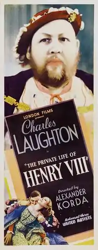 The Private Life of Henry VIII is a 1933 British film directed and co-produced by Alexander Korda and starring Charles Laughton, Robert Donat, Merle Oberon and Elsa Lanchester. It was written by Lajos Bíró and Arthur Wimperis for London Film Productions, Korda's production company. The film, which focuses on the marriages of King Henry VIII of England, was a major international success, establishing Korda as a leading filmmaker and Laughton as a box-office star.