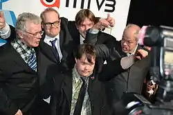The band members celebrate the film winning the Jussi Award for the best documentary in 2013.