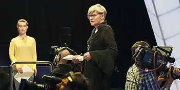 The show is written and presented by the well-known Croatian television personality, Željka Ogresta, whose husband, Dubravko Merlić (head of Castor Multimedia) conceived the format.[2] The first episode was broadcast on 31 October 2004 with opera singer Sandra Bagarić, sociologist Aleksandar Štulhofer and politician Dragan Primorac announced as the contestants.[3] According to HRT's statistics the first season averaged 61,539 callers per episode.[4] The Pyramid won a 2007 Rose d'Or award for Best Live Show,[5] and has inspired several localized versions in the region including those in Serbia (started in 2005), Bosnia and Herzegovina (started in 2007), Bulgaria (started in 2007), Macedonia (started in 2007), and Montenegro (started in 2007).[6] The Slovenian version, which started in 2006, is presented by Erika Žnidaršič and broadcast on RTV Slovenija.[7] There was also a Canadian version, La joute (The Joust), presented by Stéphan Bureau and broadcast by Télé-Québec.[8] La joute ran for two seasons but was discontinued after the 2009/2010 season when the ratings had dropped 40% from the previous season.[9]