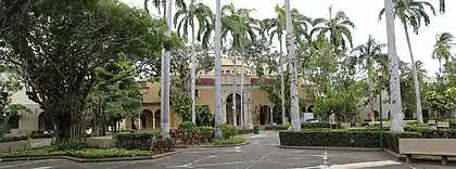 The Quadrangle (Spanish: El Cuadrángulo) is the heart and main quadrangle of the University of Puerto Rico, Río Piedras. Together with the Roosevelt Tower (La Torre), it is listed on the National Register of Historic Places as the University of Puerto Rico Tower and The Quadrangle, for its unique history which represents the union between Puerto Rican architecture with the Jeffersonian Neoclassical style often seen in American universities.[2][3] It is famous for its lines of Puerto Rican royal palm (Roystonea borinquena) or palma real and the architecture of its surrounding buildings.[4]