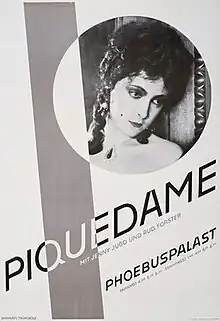 The Queen of Spades or Pique Dame is a 1927 German silent horror film directed by Aleksandr Razumny and starring Jenny Jugo, Rudolf Forster, and Henri de Vries.[1] It is one of many film adaptations of the Russian writer Alexander Pushkin's 1834 short story "Pikovaya Dama" ("The Queen of Spades") and follows his story closely. It is an example of German Expressionism so prevalent there following the success of The Cabinet of Dr. Caligari in 1919.[2] The film's sets were designed by art director Franz Schroedter.