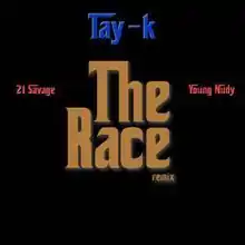 "The Race" is the debut single by American rapper Tay-K. It was originally released on SoundCloud independently on June 16, 2017,[1] but was later re-released for digital download and streaming by 88 Classic and RCA Records on July 29, 2017. The song charted at number 44 on the US Billboard Hot 100, and is from his debut mixtape, Santana World.[2][3]