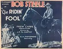 The Ridin' Fool is a 1931 American pre-Code Western film directed by John P. McCarthy and written by Wellyn Totman. Produced by Trem Carr, the film was released on May 25, 1931 by Tiffany Productions, Inc.[1]
