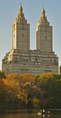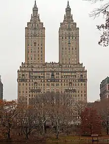 The San Remo is a cooperative apartment building at 145 and 146 Central Park West, between 74th and 75th Streets, adjacent to Central Park on the Upper West Side of Manhattan in New York City. It was constructed from 1929 to 1930 and was designed by architect Emery Roth in the Renaissance Revival style. The San Remo is 27 stories tall, with twin towers rising from a 17-story base. The building is a contributing property to the Central Park West Historic District, a National Register of Historic Places–listed district, and is a New York City designated landmark.