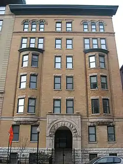 The Savoy is a historic apartment building located at Indianapolis, Indiana. It was built in 1898, and is a six-story, three-bay-wide, buff-colored brick building on a raised basement. It has rock faced arched entrance, oriel windows on the second through fourth floors, Romanesque Revival style arched windows on the top floor, and a projecting cornice.[2]: Part 1, p. 35–36