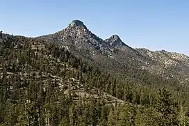 The Sisters is part of the Spring Mountains which are a subrange of the Great Basin Ranges. The mountain is located 30 miles (48 km) northwest of Las Vegas in the Spring Mountains National Recreation Area and on the boundary of the Mount Charleston Wilderness, on land managed by the Humboldt–Toiyabe National Forest.[2] Topographic relief is significant as the summit rises 2,000 feet (610 meters) above Lee Canyon in one mile (1.6 km). This mountain's toponym has been officially adopted by the U.S. Board on Geographic Names.[1]