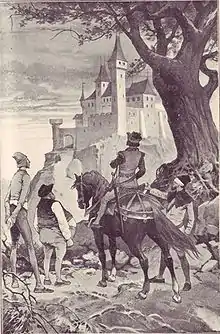 The prince arriving at the castle.