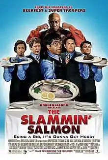 The Slammin' Salmon is a 2009 American comedy film by the comedy troupe Broken Lizard. It is about the owner of a restaurant who holds a contest to see which one of his waiters can earn the most money in a single night. The winner receives $10,000, and the loser receives a "beat down" by the owner, Cleon Salmon, a former heavyweight boxer (played by Michael Clarke Duncan). Kevin Heffernan directed the film, his first time for a Broken Lizard film.[1]
